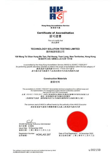 於2020年,高科檢測成功申請香港實驗所認可計劃(HOKLAS)認證。註冊編號:HOKLAS-297 。 高科檢測嚴謹實施質量管理體系,遵從《測試與校正實驗室能力的一般要求《BSENISO / IEC 17025》。